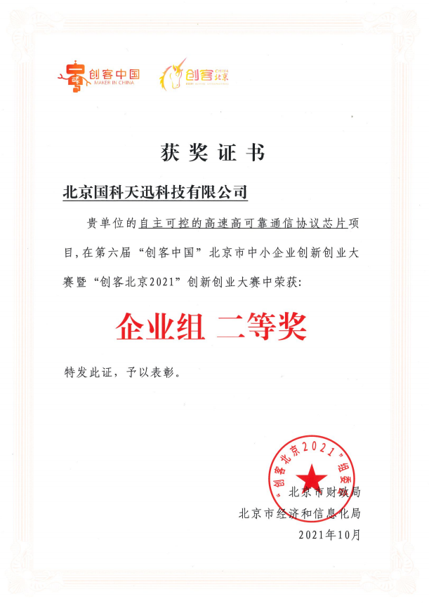 大赛自6月启动以来,受到广大中小企业和创客团队高度关注,吸引了全市近5千个项目报名。国科半岛网站网页版页面登入-半岛online(中国)参赛的“自主可控的高速高可靠通信协议芯片”项目,经初赛、复赛两个月激烈角逐,在众多项目中表现抢眼,成功入围新一代信息技术领域决赛,经路演获企业组百强,后与百家企业共同比拼及专家组评审后最终获此殊荣。
