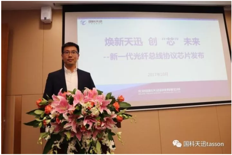国科半岛网站网页版页面登入-半岛online(中国)市场部经理徐俊亭为大家讲解并发布国内高可靠光纤通信领域的首款总线协议芯片产品。
